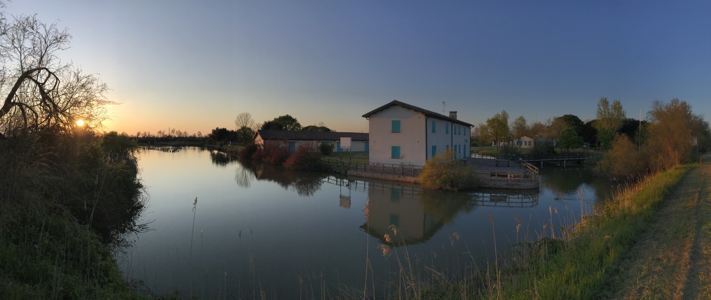 The importance of traditional lagoon fish farming (vallicoltura) in this area is evidenced by the elegant Canneviè manor house, once the residence of the capo pesca (head fisherman). Its 18th-century Venetian-influenced architectural style is complemented by adjoining fishing stations equipped with fish ponds, fish traps (lavorieri), ingenious lagoon fishing devices, warehouses, and tabarre. Together, these structures document the entire cycle of lagoon fish farming, including fish marination, and were already listed among the assets of the last Duke of Este, Alfonso II.