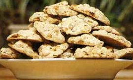 Scottare le mandorle, pelarle e tostarle in forno. Montare gli albumi a neve, unirvi lo zucchero e passare il composto a bagnomaria finché inizia ad addensarsi. Aggiungere le mandorle, togliere dal fuoco e incorporare la farina fino a ottenere un impasto sodo. Disporre il composto a cucchiaiate su una teglia imburrata e infarinata e cuocere a 180 °C fino a doratura.