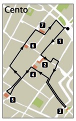 L'ITINERARIO IN SINTESI Piazza Bonzagni, Corso Guercino (1) , Casa Pannini, Piazza del Guercino, Palazzo del Governatore (2), Galleria d'Arte Moderna A. Bonzagni, Via Provenzali, Via Malagodi, Chiesa di San Pietro, Porta Pieve (3), Via Campagnoli, Teatro Borgatti (4), Chiesa di San Filippo Neri, Santuario della Beata Vergine della Rocca, Rocca (5), Via Ugo Bassi, Basilica Collegiata di San Biagio, Civica Pinacoeca Il Guercino (6), Chiesa del Rosario (7), Pinacoteca di San Lorenzo (8),