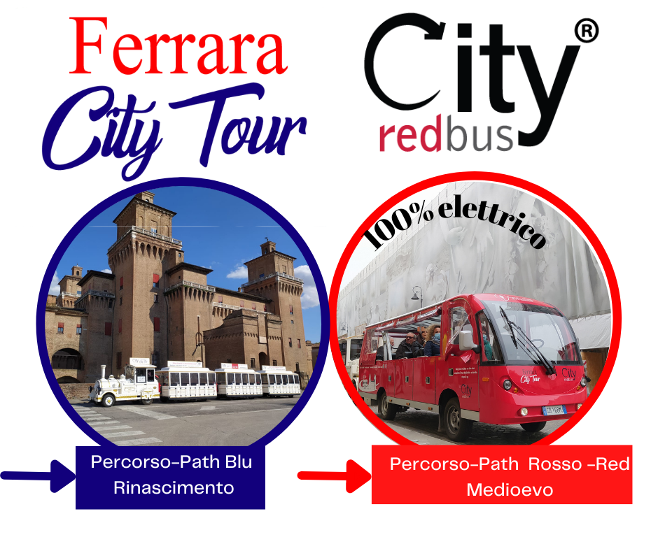 Il Ferrara City Tour ha due itinerari (blu del trenino “percorso rinascimentale” e rosso del minibus elettrico “percorso medioevale”).l percorsi hanno una durata di circa 40 minuti e partono da Corso Martiri della Libertà nelle immediate adiacenze del Duomo.I Ticket di viaggio si possono acquistare on line oppure al capolinea presso il personale di bordo.Durante il tour, è disponibile l’audio guida in 6 lingue con informazioni ed approfondimenti sui monumenti visibili lungo il percorso e curiosità sulla città di Ferrara.Il servizio è attivo sabato, domenica e festivi e su prenotazione per gruppi