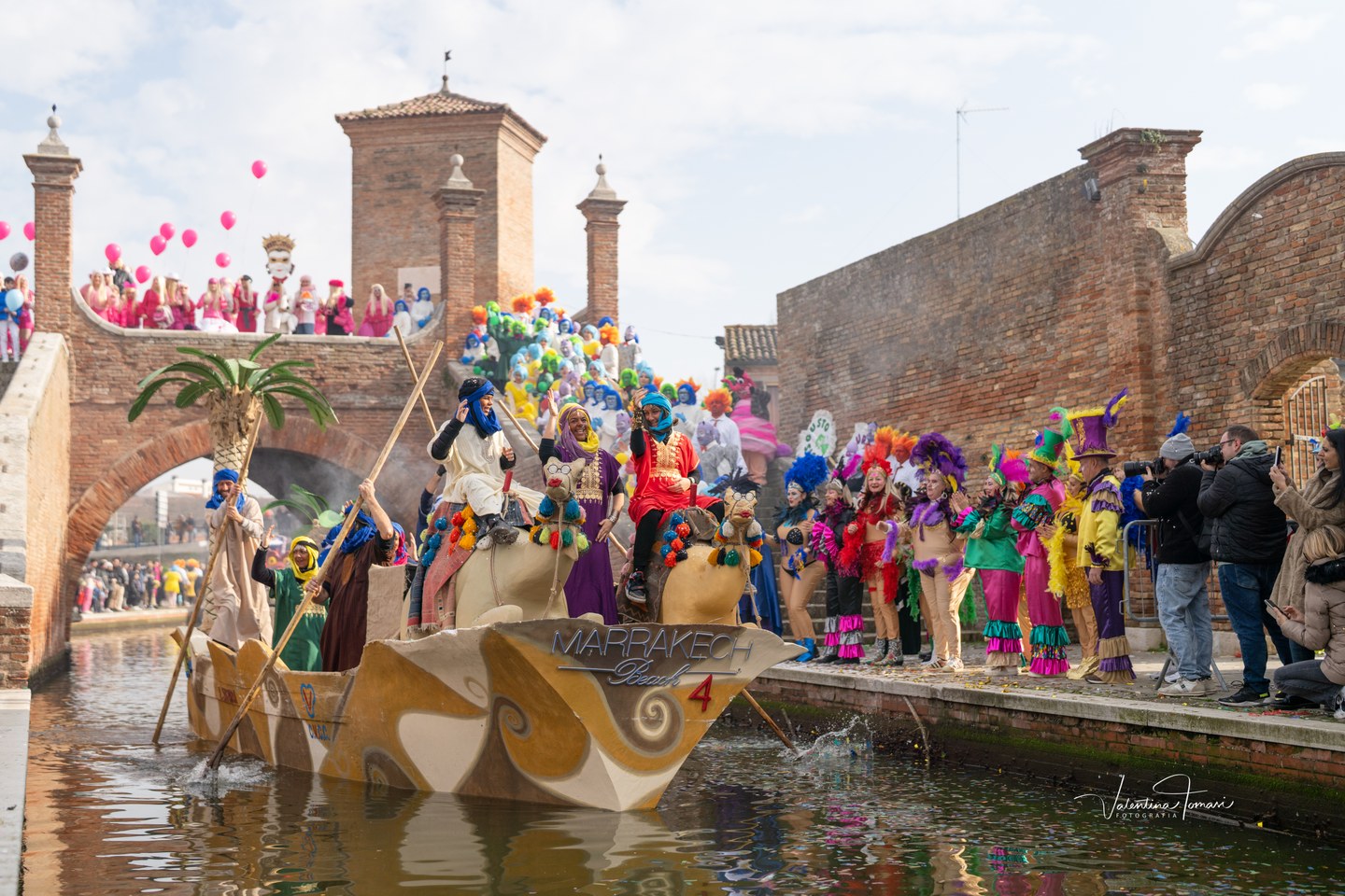 L’unicità del Carnevale di Comacchio si deve alla miscela di fantasiosa magia della cittadina, con la creatività di tutti gli attori, vera anima dell’evento. Le barche vengono trasformate in veri e propri battelli allegorici, divenendo così delle originali opere d’arte.