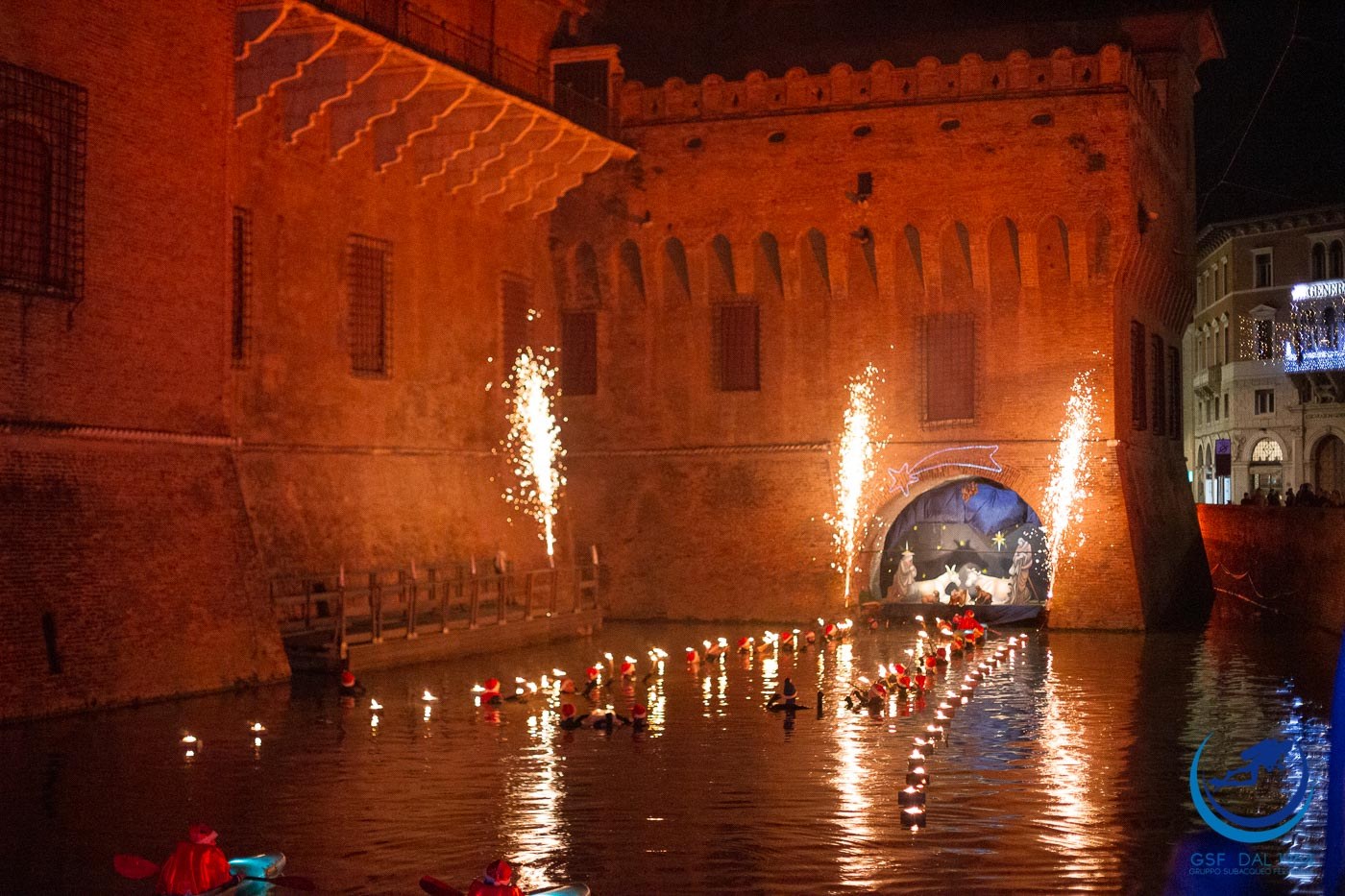 Il Gruppo Subacqueo Ferrarese organizza la 42^ edizione del Natale Sub, suggestiva fiaccolatache si svolge nel fossato del Castello Estense.