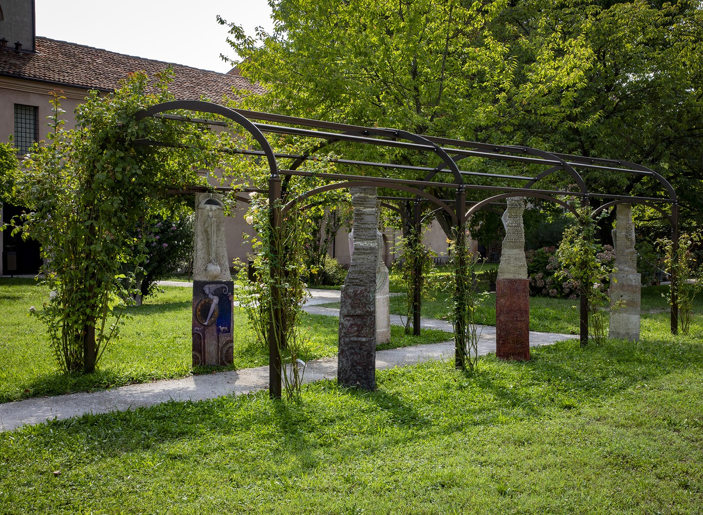Sculture di Maurizio Bonora nel giardino di Palazzo Schifanoia.